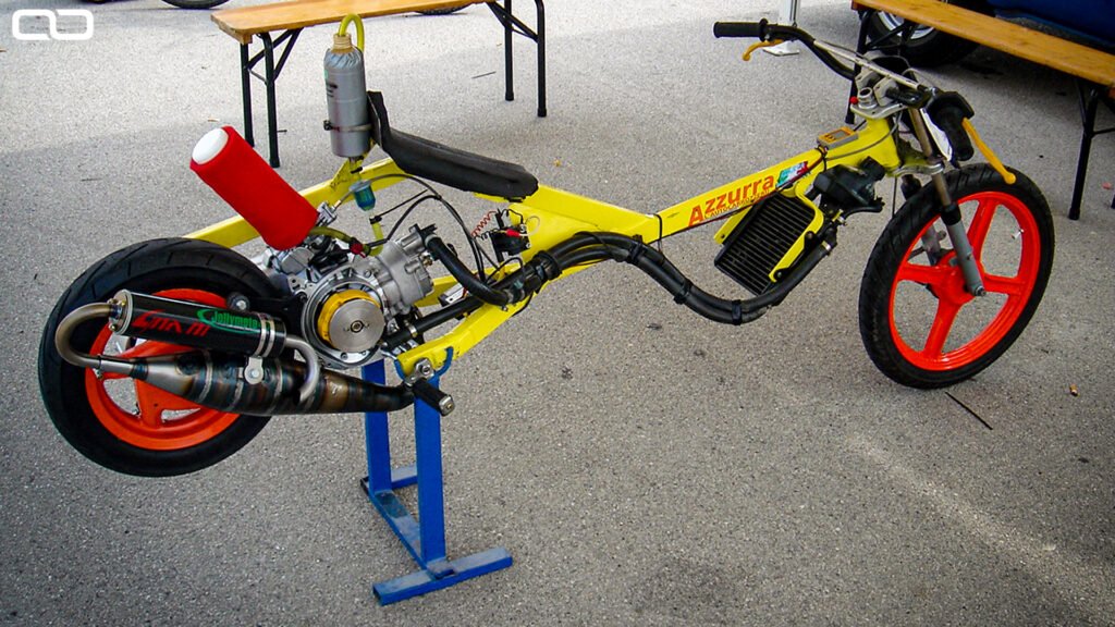 Ma andiamo avanti con la nostra storia, perché nel titolo c’è scritto “La disciplina che cambiò il mondo Scooter” dunque facciamo svariati passi indietro e torniamo al periodo in cui ho iniziato a seguire questo mondo. Per la precisione siamo a cavallo fine 2003 e inizio 2004 circa, avevo da poco installato l’adsl in casa e l’unico modo per navigare era stare accovacciato a terra a un metro dal modem con il mio portatile Toshiba a cavalcioni, da quasi neo maggiorenne mi ero appassionato al mondo dei motori svariati anni prima, ma su internet che si diceva di questi? Mi imbatto in un articolo su di un gruppo termico ad altissime prestazioni di cui non avevo mai sentito parlare prima, nemmeno sulle riviste specialistiche. Stiamo parlando del primo 2Fast Piaggio il 78cc con scarico Booster e Traversino di Massimo Tedeschi, l’articolo parlava di come nacque il progetto, approfondendo le varie scelte tecniche nello sviluppo fino alla realizzazione del gruppo termico di casa TrTeam. All’epoca era, poeticamente riferito lo scontro tra “Davide contro Golia” dove Davide è il piccolo artigiano e Golia sono le varie case produttrici di componenti aftermarket che noi tutti conosciamo oggi. Chiaro Massimo non è stato il primo a costruirsi il suo motore e a cercare soluzioni alternative per diventare competitivo, ma col tempo è riuscito a trasformare quel TRTeam in un brand riconosciuto a livello globale.